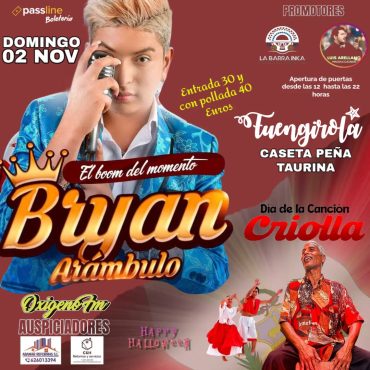 02 Nov 2025 Fuengirola — malaga Bryan Arambulo , dia de la cancion Criolla y Halloween bryan arambulo Más información